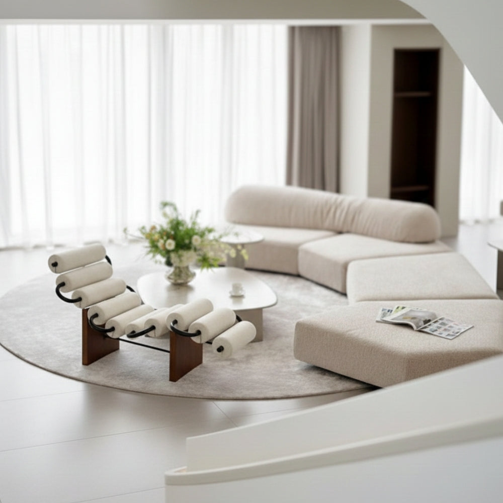Here, luxury is tactile. It lives in the weight of materials, in the softness of textiles, in the quiet harmony between form and light. A space where furniture transcends function and becomes emotion.