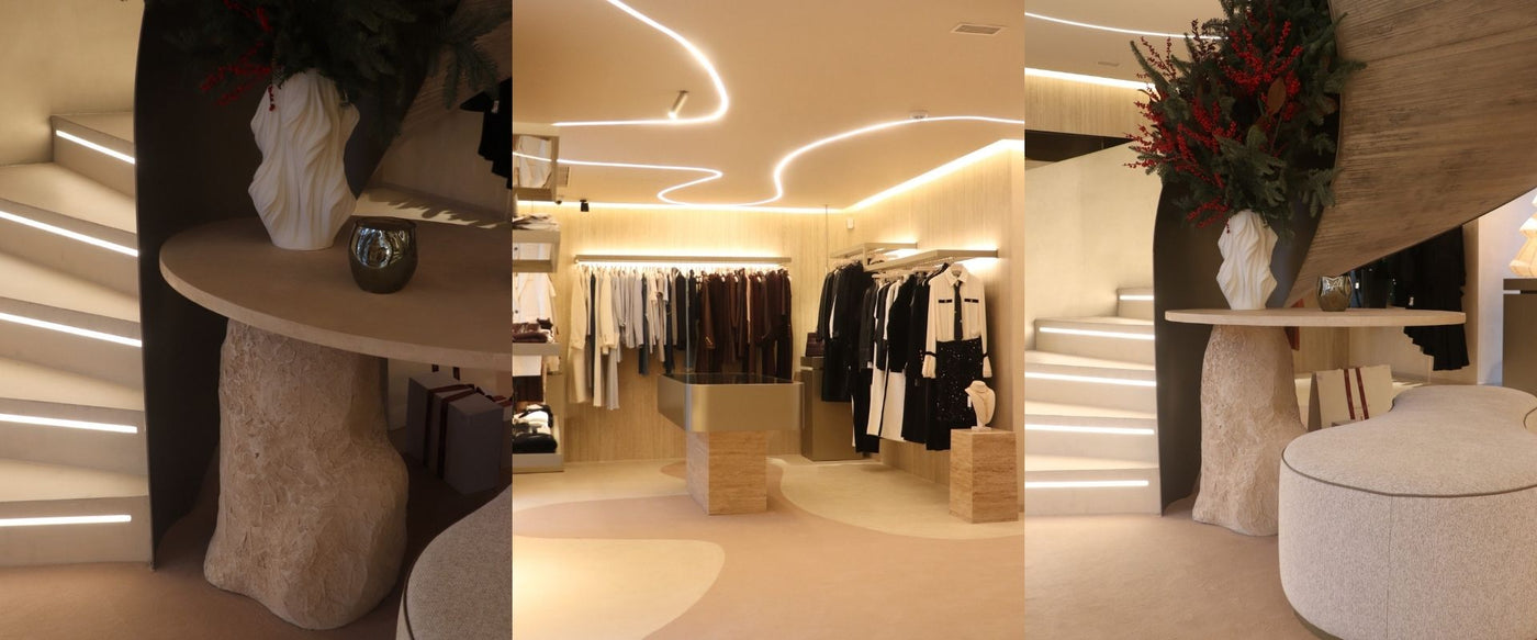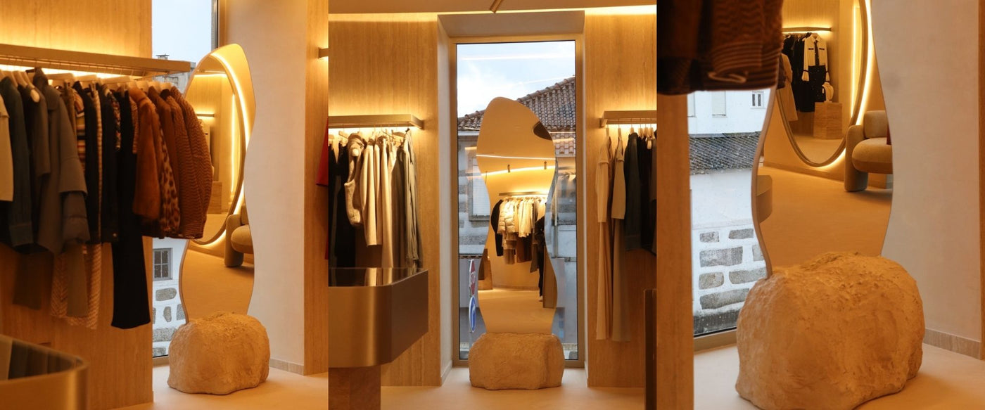 Strategically placed throughout the store, our organic standing mirrors introduce a sense of depth and fluid movement, offering a refined contrast between their earthy finishes and the warmth of the interior architecture.