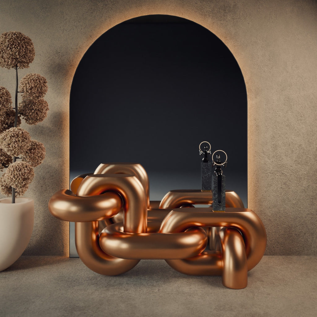 MainGUILTY reimagines that ancient symbolism through the Cerberus Console — a piece that evokes the unbreakable bond between the tangible and the transcendent. With its sculptural presence and commanding form, it transforms myth into matter, inviting the essence of legend into the contemporary space.