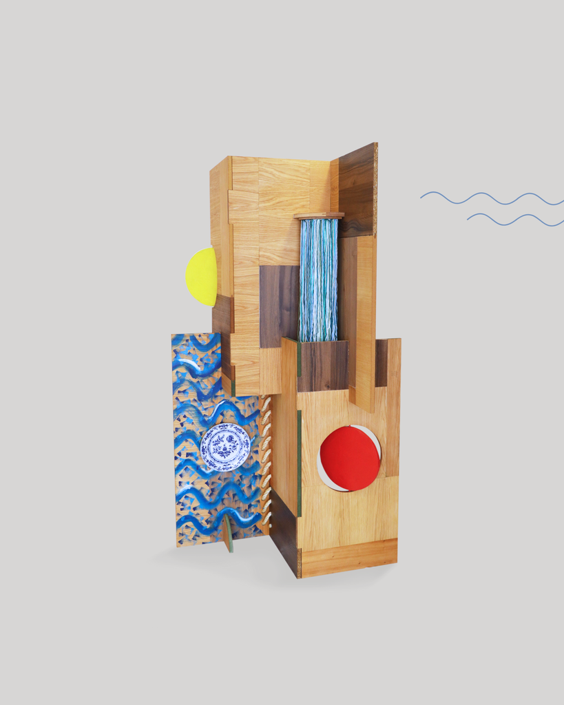 Uma peça que cruza a cultura portuguesa e japonesa, inspirada no oceano como elo comum. Um biombo construído com madeiras de desperdício, lã residual e cerâmica evocativa, combinando formas, técnicas e símbolos dos dois países. A obra valoriza o upcycling e os materiais com história, propondo um design que respeita o passado e aponta ao futuro.