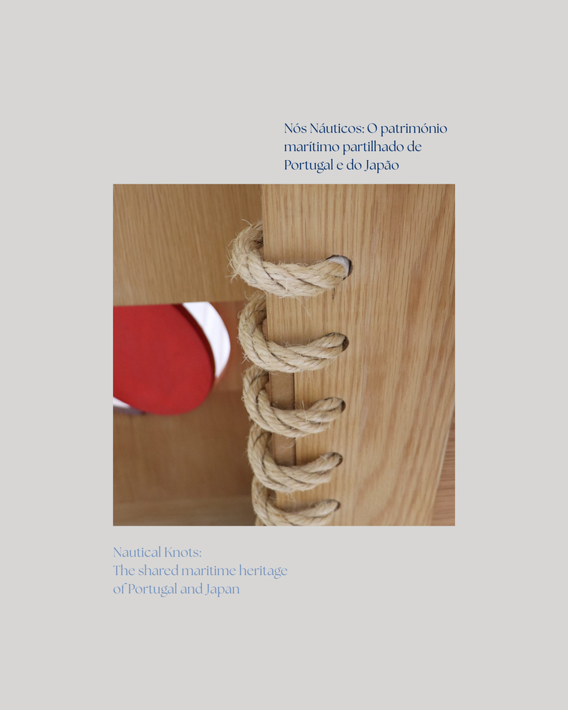 Os nós náuticos, presentes nas tradições marítimas de Portugal e do Japão, representam ligação, força e herança marítima. No biombo, são feitos em corda de sisal, unindo simbolicamente as duas culturas.